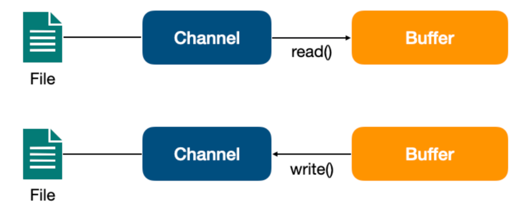 read:读取数据并写入到 Buffer 中。write:将 Buffer 中的数据写入到 Channel 中。