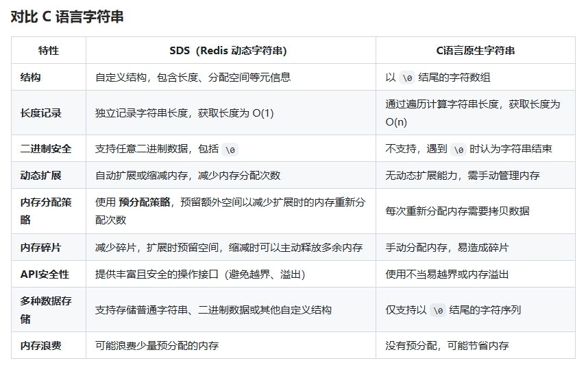 Redis-String leard 发布于 2025-06-07 1 次阅读 Redis的string类型底层使用的是SDS(Simple Dynamic String,简单动态字符串)结构。 SDS可以自定义结构,包含长度、分配空间等元信息。独立记录字符串的长度,支持任意二进制数据,可以动态扩展内存。